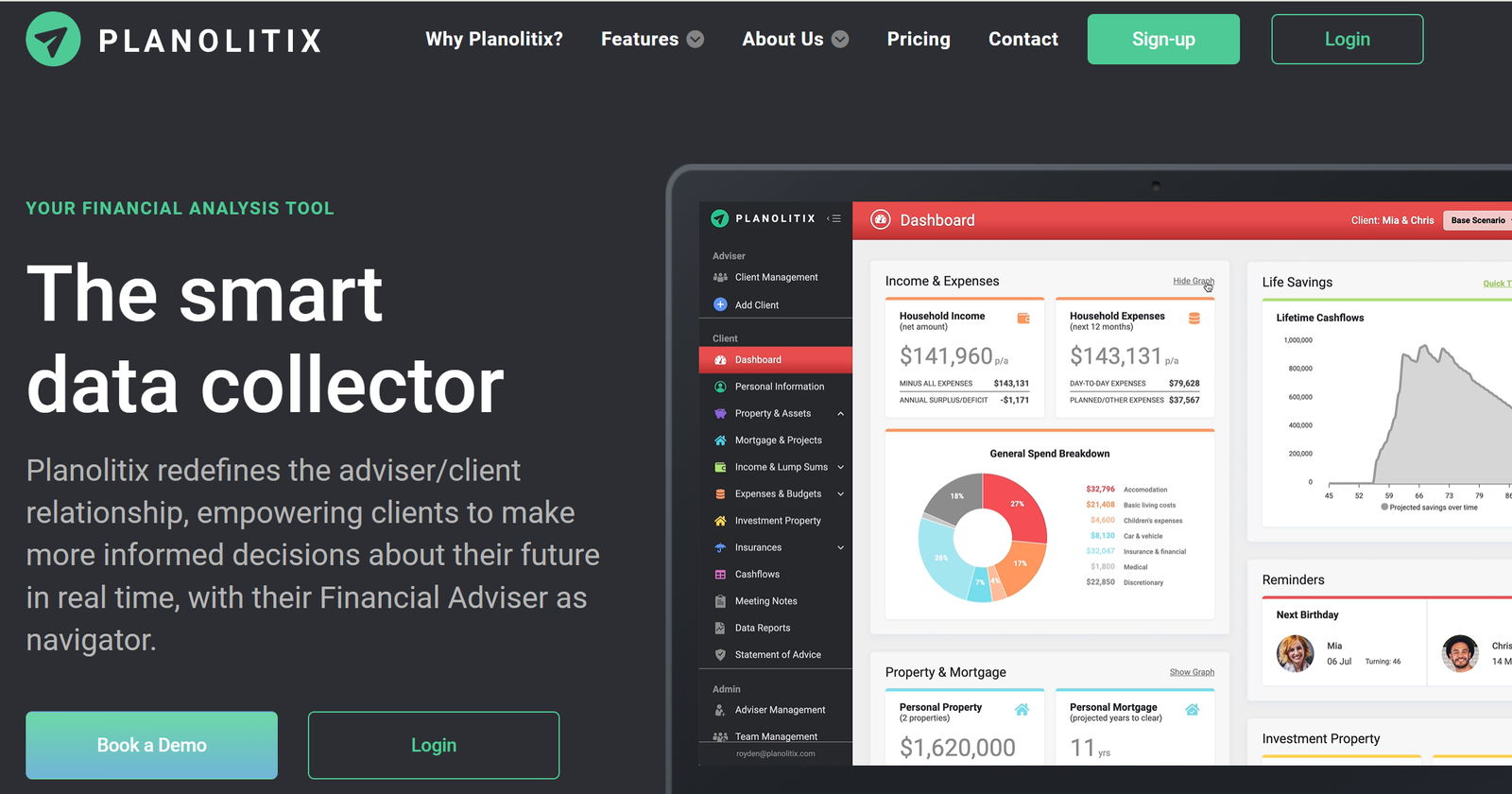 Planolitix is an advanced diagnostic analysis tool intended to furnish financial consultants with a comprehensive cash flow modelling solution. The software generates a visual depiction of a client’s financial status, allowing advisers to assist their clients during all phases of life. Planolitix equips consumers with new features to facilitate informed decision-making, while furnishing advisers with the necessary tools to efficiently provide high-quality financial advice.